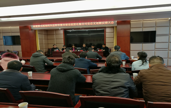 1月22日上午,市委第五巡察组组织岳阳市教育建设投资有限公司全体员工召开了第三轮巡察意见反馈大会。在反馈大会上,巡察组指出了该公司在党的领导、党的建设和全面从严治党等方面存在的若干问题并提出了相应的整改意见及建议。该公司党总支书记、董事长姚育章当即表态,公司将认真严肃地对待巡察组的反馈意见,制订整改措施,细化整改步骤,严格按照市委的要求全面落实整改意见。