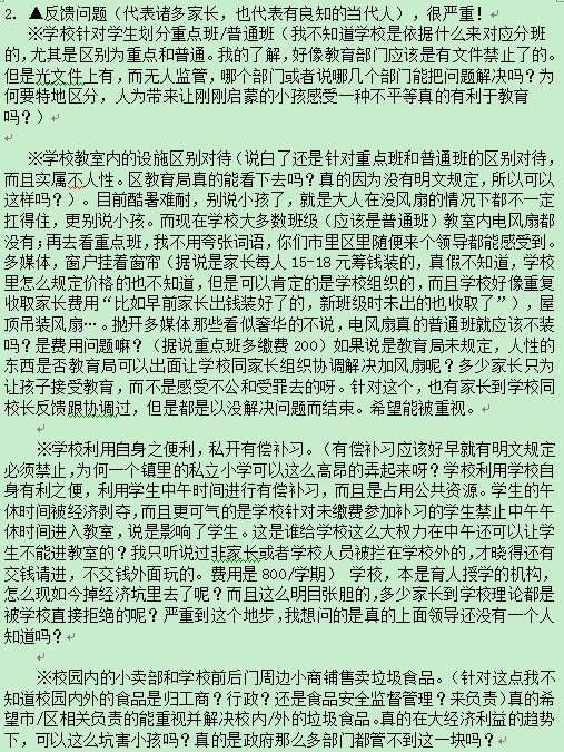 关于学校办重点班、强制学生购买资料和违规补课等问题。