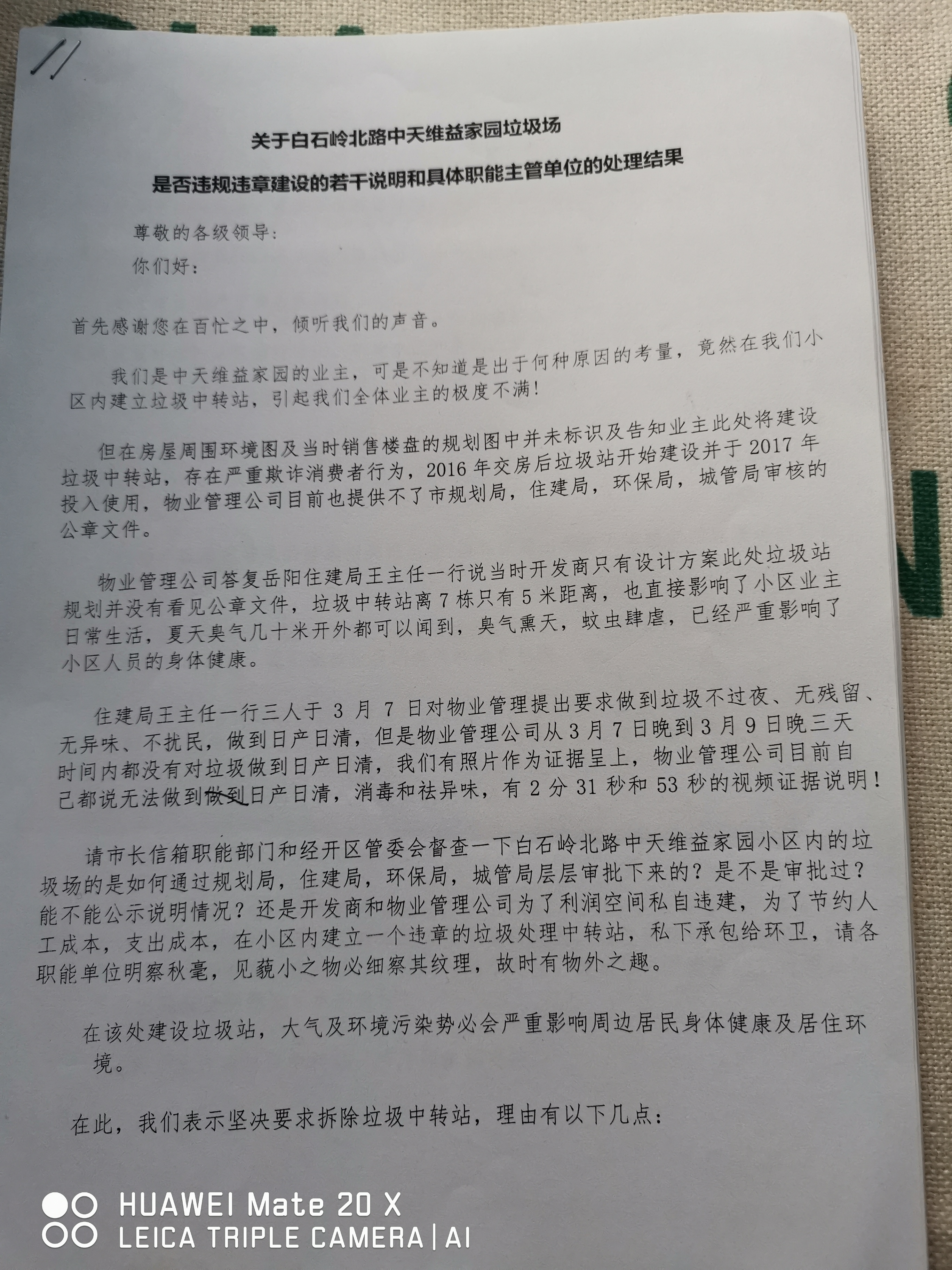 | 内容: | 各级领导你们好! 关于白石岭中天维益垃圾场问题我们已经向市长信箱投诉举报四次了! 1.通过四次举报我们的核心只要一个,此垃圾场有没有规划局,住建局,环保局,城管局批复的法规正式公章准建文件?通过三次举报主管单位一直没有正面的回复我们和出示这些正规合法公章文件。 2.住建局提出的日产日清,消毒,祛异味,物业管理只在这段时间做到了日产日清,其他的消毒祛异味根本无法做到,我们直管部门没有从根本上以民生大方向解决问题根源。 3.我们作为小区业主的一员对在小区内建设垃圾场,深恶痛绝,我们集体102人签名要拔掉此垃圾场,对我们的日常生活影响太大了。 请主管单位正式公开出示此垃圾场的合法合规合理公章文件,以告知我们广大业主,我们不需要在这件事情上拉扯,因为受害的是我们,我们只希望你们站在民生环境上高效快速的处理问题 经开区管委会在3月21号也提出了提升公共卫生服务水平 共筑健康经开区,提升公共卫生服务质量、树立良好社会形象等方面,继续开创卫生健康工作新成就,要牢固树立以人民为中心的理念,切实增强卫生健康为民意识 希望各级领导帮我们切实的解决问题,不想正常维权路上漫漫长路不容易。 附件1:1553593423022816839262019472886.jpg 附件2:15535934550625509656417971369507.jpg 附件3:15535934813865931517506875862150.jpg |